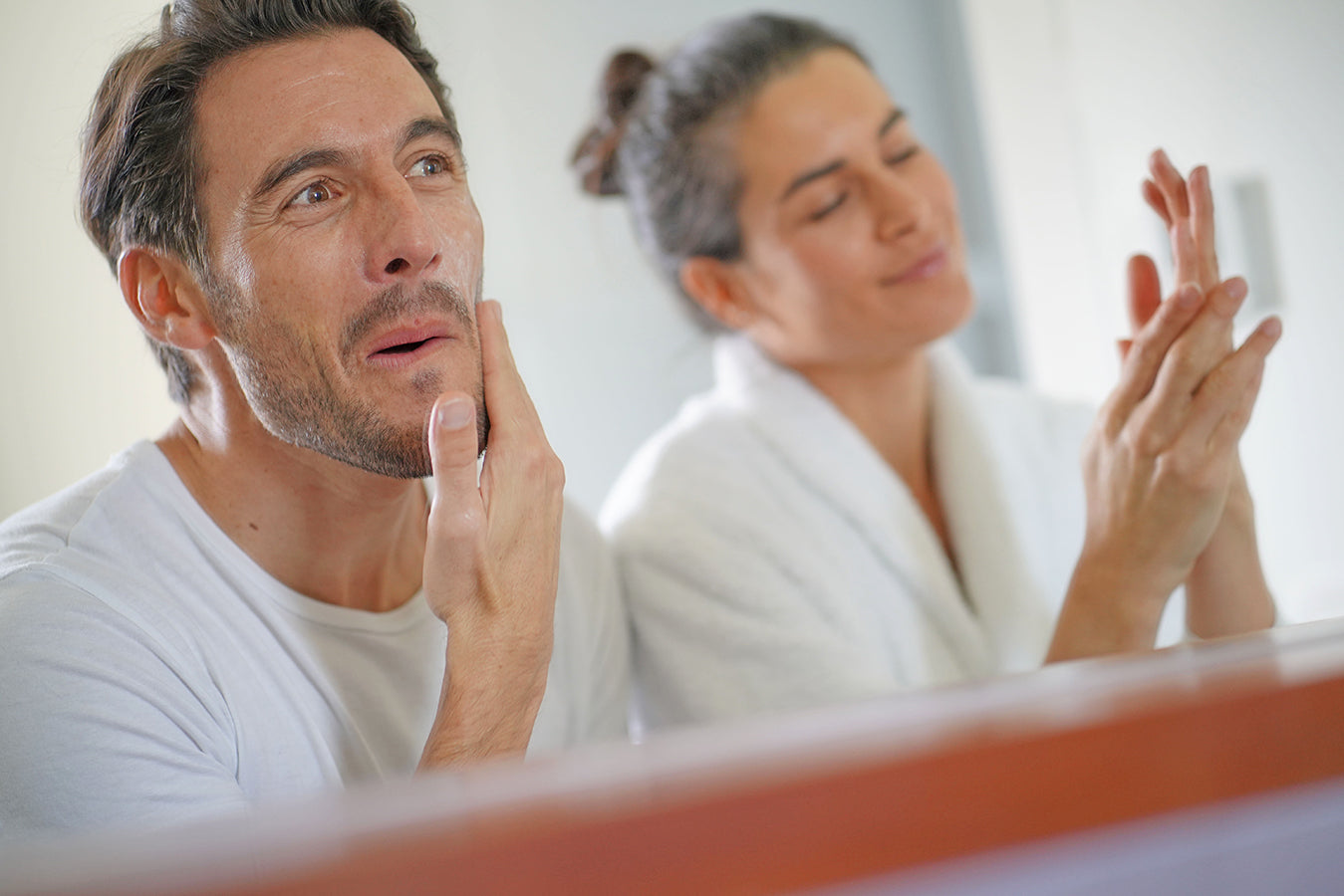 Skin pH should ideally be at 5.5. Gentle skin cleansers are unique from soaps as they are formulated for the skin and they are pH-balanced. The market is full of affordable cleansers that have good ingredients that not only cleanse the skin, but help the skin replenish its moisture barrier. Some ingredients to look for are ceramides, hyaluronic acid, glycerin and Vitamin E. Steer clear of heavily fragranced cleansers. Let’s save the fragrance for the after-shave or his cologne!